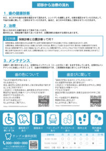 | 矯正(成人・小児) | 検討期間の短縮/カウンセリング促進 | ・矯正の流れチラシ ・親御さんへの案内チラシ | 期間・費用・メリットをわかりやすく。長期治療の不安を解消して受診を後押し |