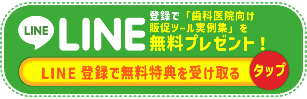 ラクポケデンタルでは、LINE登録いただいた方全員に「歯科医院向け販促ツール実例集」をプレゼントしています