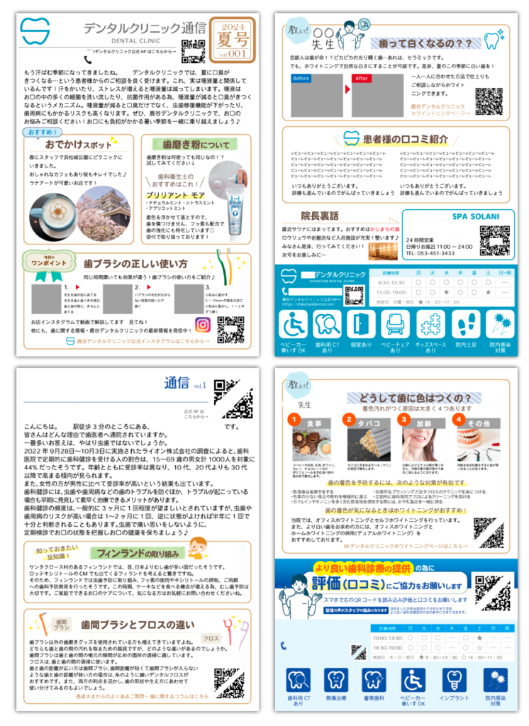 季節ごと(年4回)の発行で、予防啓発や自費メニューの周知、医院のファンづくりに効果的。
