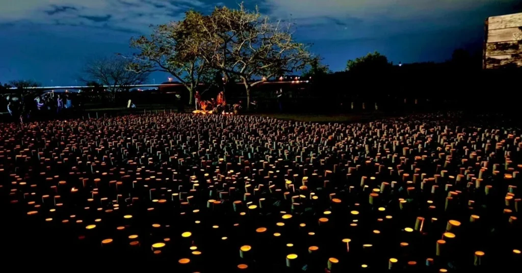島田市が誇る「世界一長い木造歩道橋」蓬莱橋の下に、8974(やくなし)の願いを込めて無数の竹あかりを灯し、幻想的な“光の川”をつくる市民参加型のアートイベントです。2022年に「コロナ禍から街を元気にしたい」という想いから始まり、2025年で4回目の開催を迎えます。初年度の8,974本からスタートし、年々規模が拡大。昨年度は15,897本の竹あかりが灯され、市民・高校生・地元企業・神社など、地域の多様な力が集結する一大プロジェクトへと成長しました。