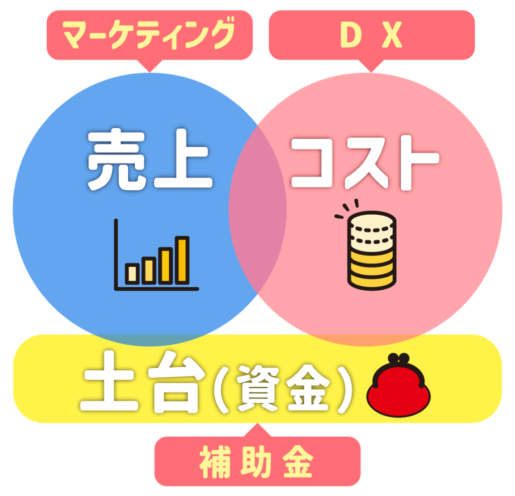 売上アップやコスト削減を実現するには、資金という土台が必要です。